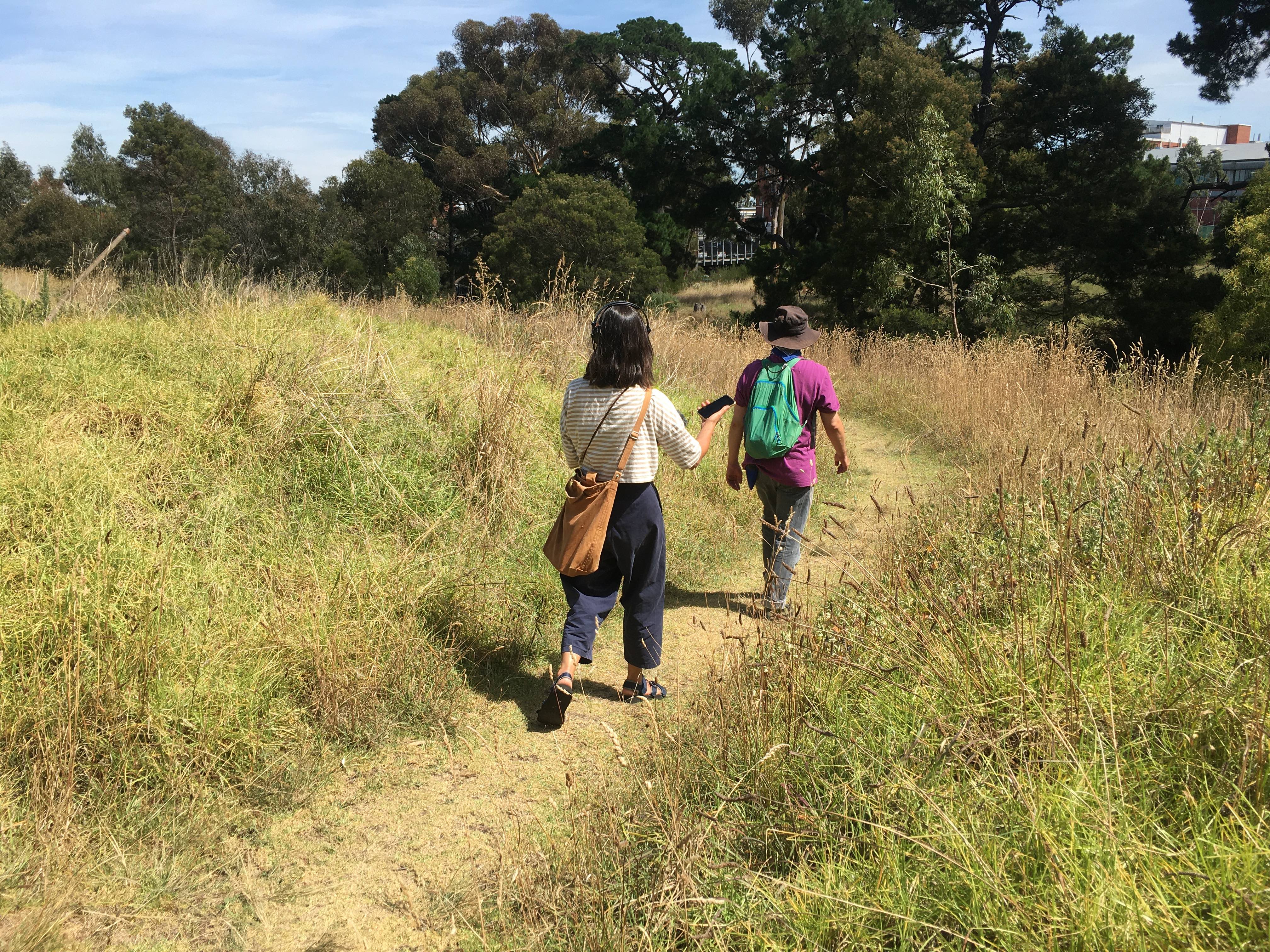 Reimagining the audio walk as an expanded form, this event involves a collective moving, sounding and listening for connections between ecologies and water management practices over time. Combining narration, Auslan, performances, and audio descriptions, multi-forms of listening and sounding call attention to the materiality of listening as an embodied, located and live activity. Led by the tributaries team, the group engages specific intersections between ecologies fragmented by infrastructure and urban planning, noting the resonating continuity of smaller creeks that flow through Quor-nóng/Royal Park, and into Moonee Ponds Creek. How does tapping into the continuous flow of different sensory experiences connect with the resilient flow of urban waterways? In what ways can listening and walking offer ways of attuning to the ecological, historical and cultural layers of place?